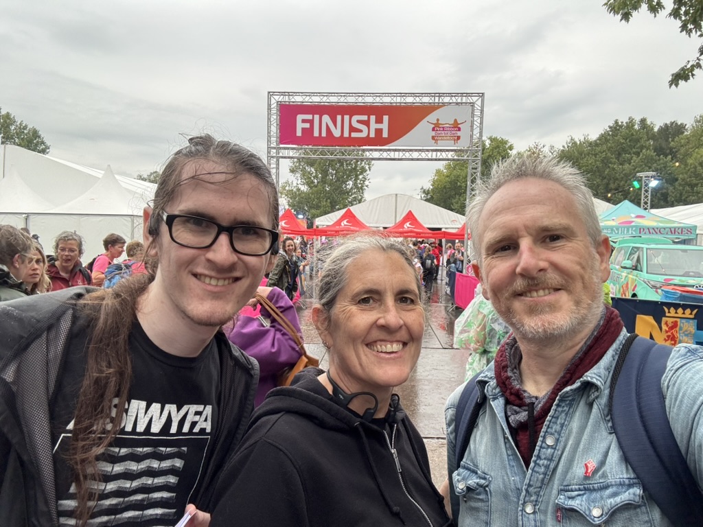 The rain did take a break as we crossed the Zaan at Spiekeroog, and we dried out a bit on the last stretch to the finish line in Burgemeester in ‘t Veldpark. The rain radar said we could expect more, and we were all tired, so we didn’t hang around to indulge in the festivities at the park. We got a bus part-way back, and picked up another kilometer walking back from Poelenburg.