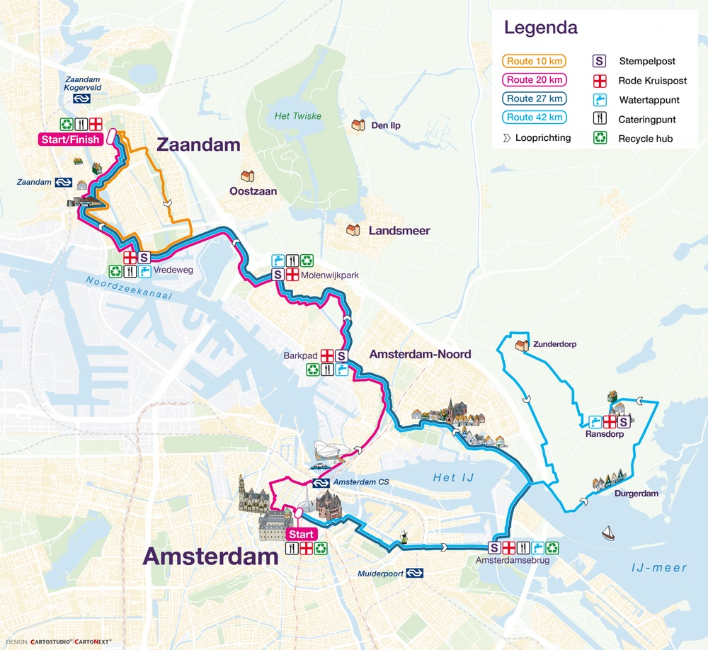 The route distances this year were 10, 20, 27, and 42km. We did the 27km one – and Alex joined us for his first Dam-tot-Dam! In the morning we took the bus to metro station Noord (which didn’t exist last time we did the walk), took the metro to Rokin, and walked to Damplein where we picked up our stempelkaarten and the first of several free snacks.